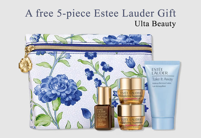 There is a complimentary 5-piece Estee Lauder gift with select $60 Estee Lauder purchase available at Ulta Beauty.