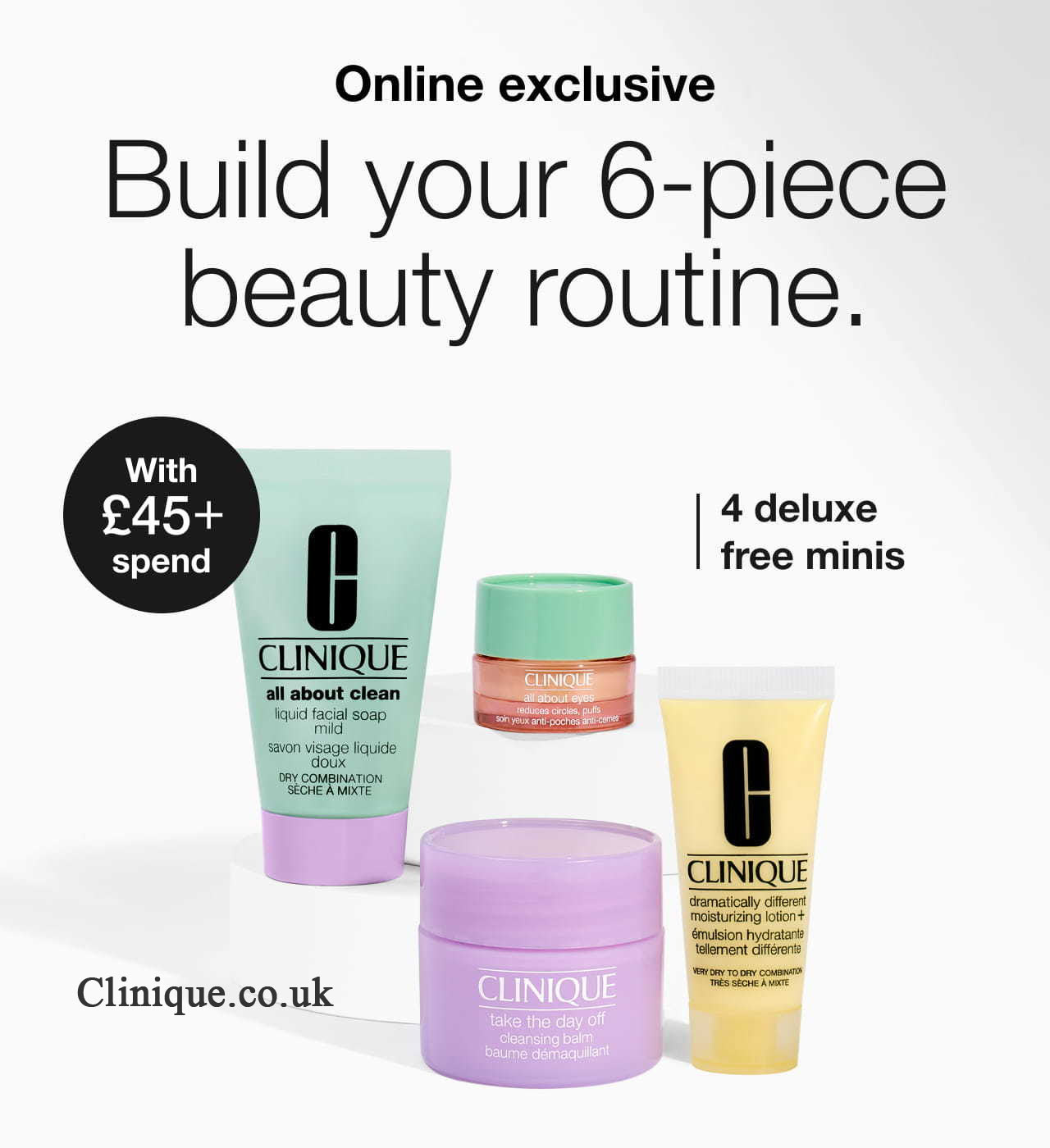 Build your 6-piece beauty routine: Spend £45 or more on Clinique.co.uk and receive 4 skincare minis.